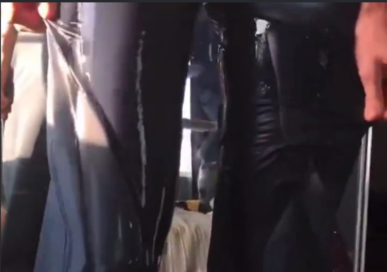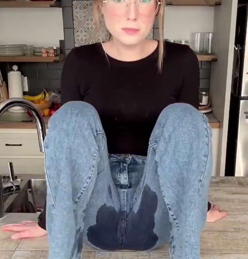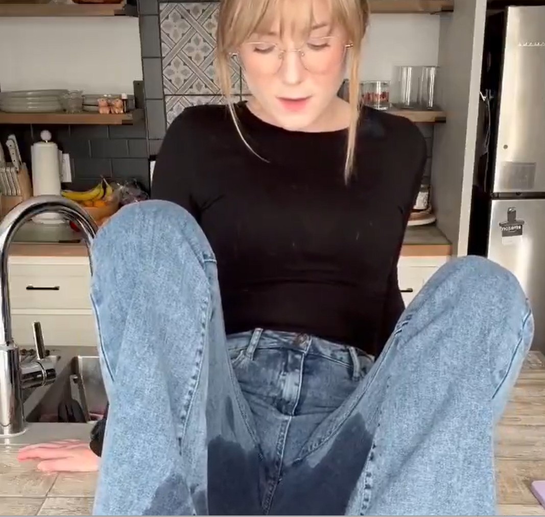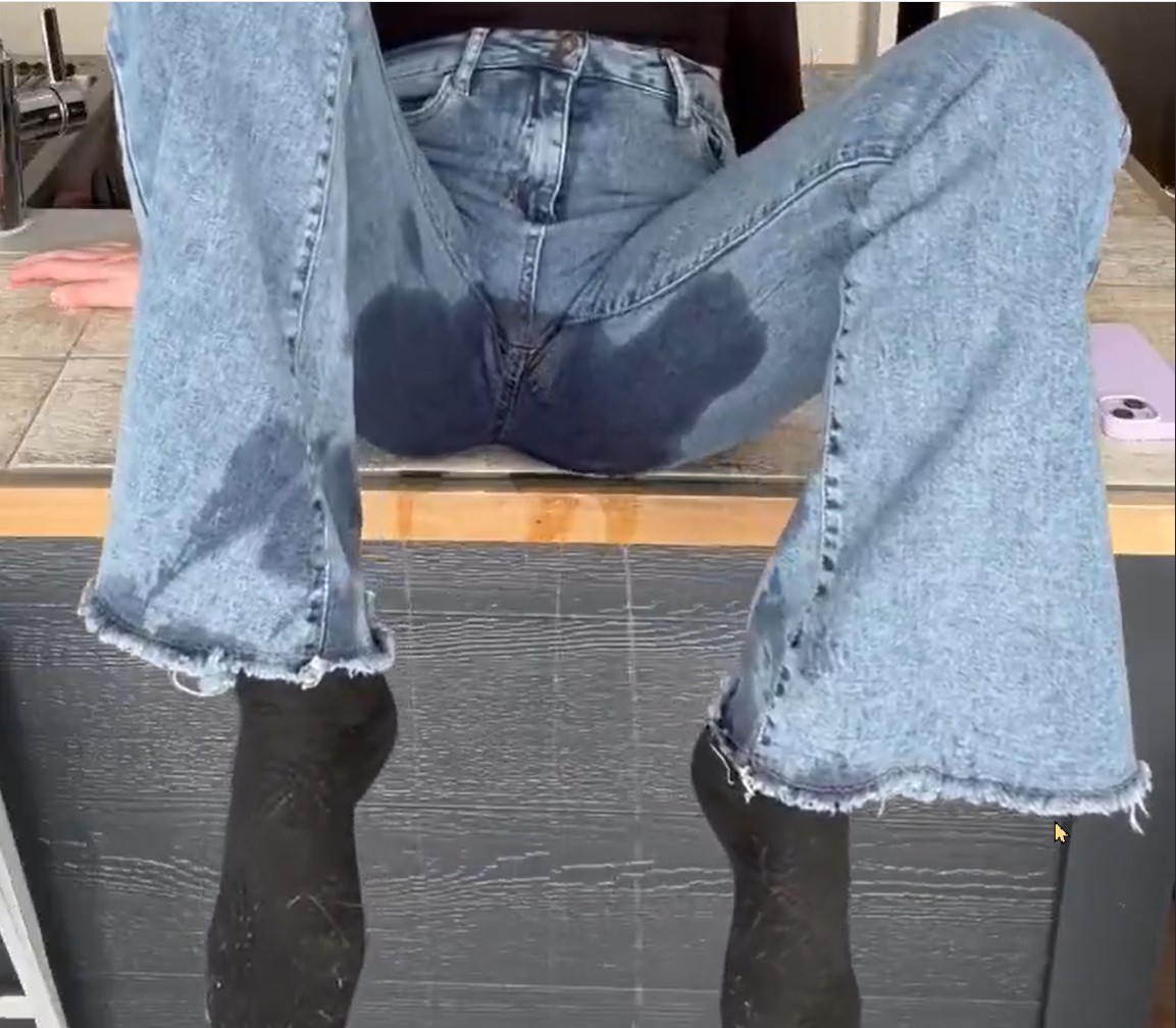 А здесь и джинсы, и под джинсами колготки. Наверное и трусики есть. И в туфлях. жаль только что не поделится приятными ощущениями.