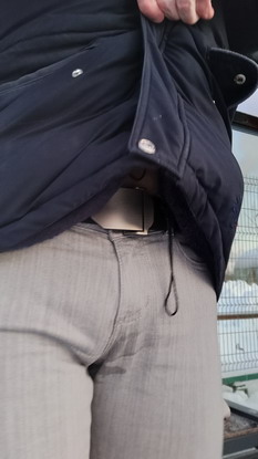 Вылил часть, остановил поток, легче стало. Спереди не промокло, наверное джинсы новые, не стираные, сопротивляются влаге, но понимаю, что попа то мокрая. Обдумываю план дальнейших действий, что делать, надо сваливать из ТЦ. Курточка длиной у меня по попу, но наверняка все видно было. Пошел не через центральный вход, а через боковой на остановку. В руках был пакет из Спортмастера, им прикрывался сзади как мог, спереди сухо было.