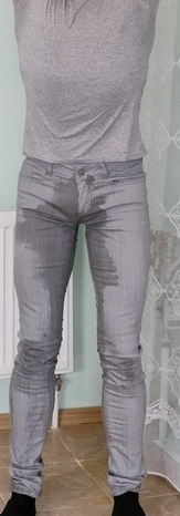 Пришел на остановку, минут 20 ждал маршрутку, опять подзамерз, ссать захотел опять сильно, наконец приехал автобус, сел. Позывы за позывами, не могу больше держать, нормальная такая струя ударила в трусы и тут уже и спереди всё начало промокать и сливаться к ягодицам, еще больше моча джинсы сзади. Остановил поток, вылил достаточно, поэтому доехал до нужной остановки уже без происшествий.