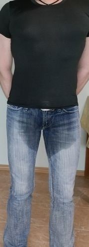 Пришел на остановку, минут 20 ждал маршрутку, опять подзамерз, ссать захотел опять сильно, наконец приехал автобус, сел. Позывы за позывами, не могу больше держать, нормальная такая струя ударила в трусы и тут уже и спереди всё начало промокать и сливаться к ягодицам, еще больше моча джинсы сзади. Остановил поток, вылил достаточно, поэтому доехал до нужной остановки уже без происшествий.